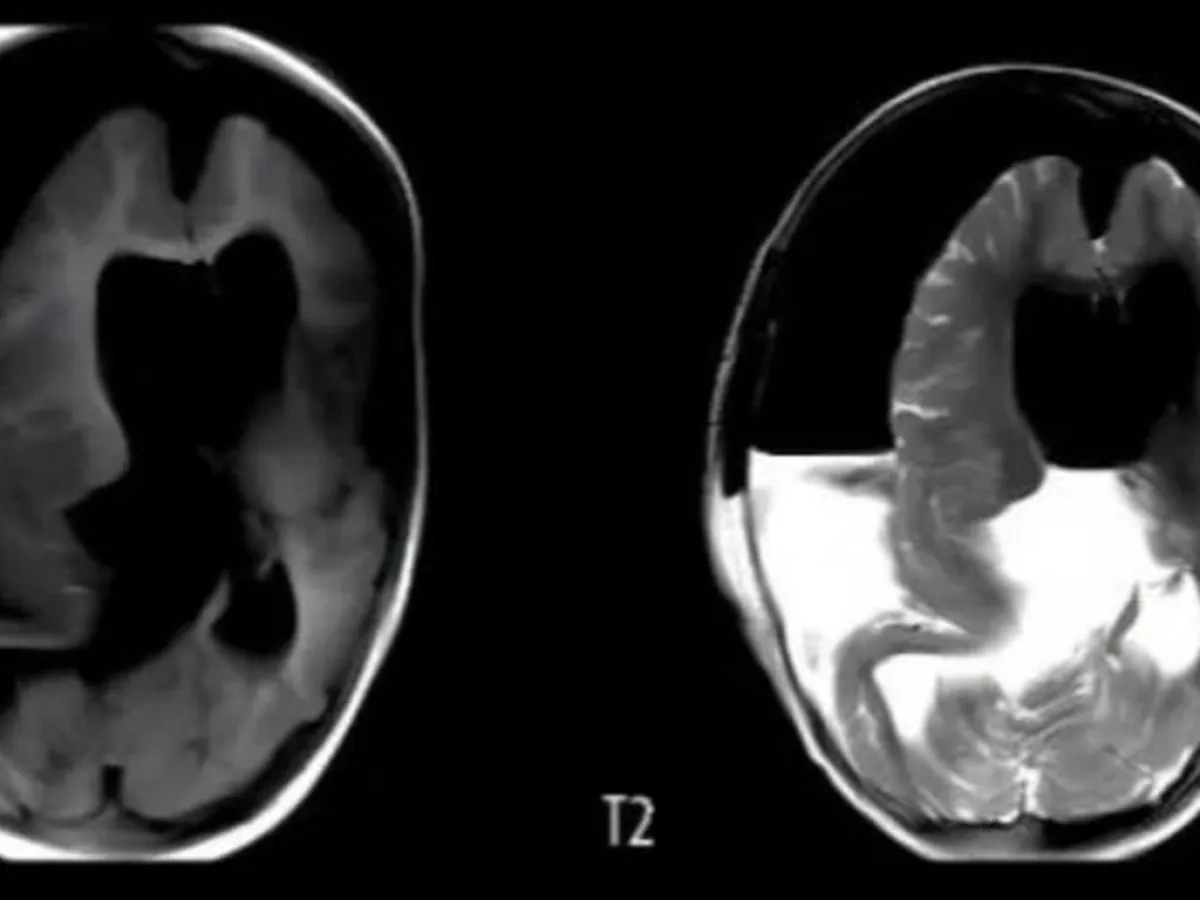 En el caso de esta beba, los médicos detectaron anomalías en su cráneo a las 33 semanas de gestación, durante un examen prenatal. Pero, la resonancia magnética no pudo proporcionar más información. La beba nació por cesárea a la semana 37 y los médicos notaron que su cabeza era notablemente más grande que lo normal.