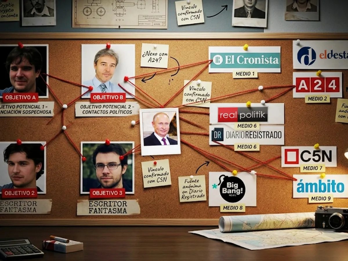 El esquema, que fue reconstruido a partir de documentos filtrados, muestra un mecanismo sofisticado que combinó tecnología, financiamiento y estrategias de manipulación informativa. En el centro de la operación aparece la creación de identidades ficticias que firmaban artículos periodísticos, dando apariencia de legitimidad a publicaciones que en realidad respondían a intereses geopolíticos externos.