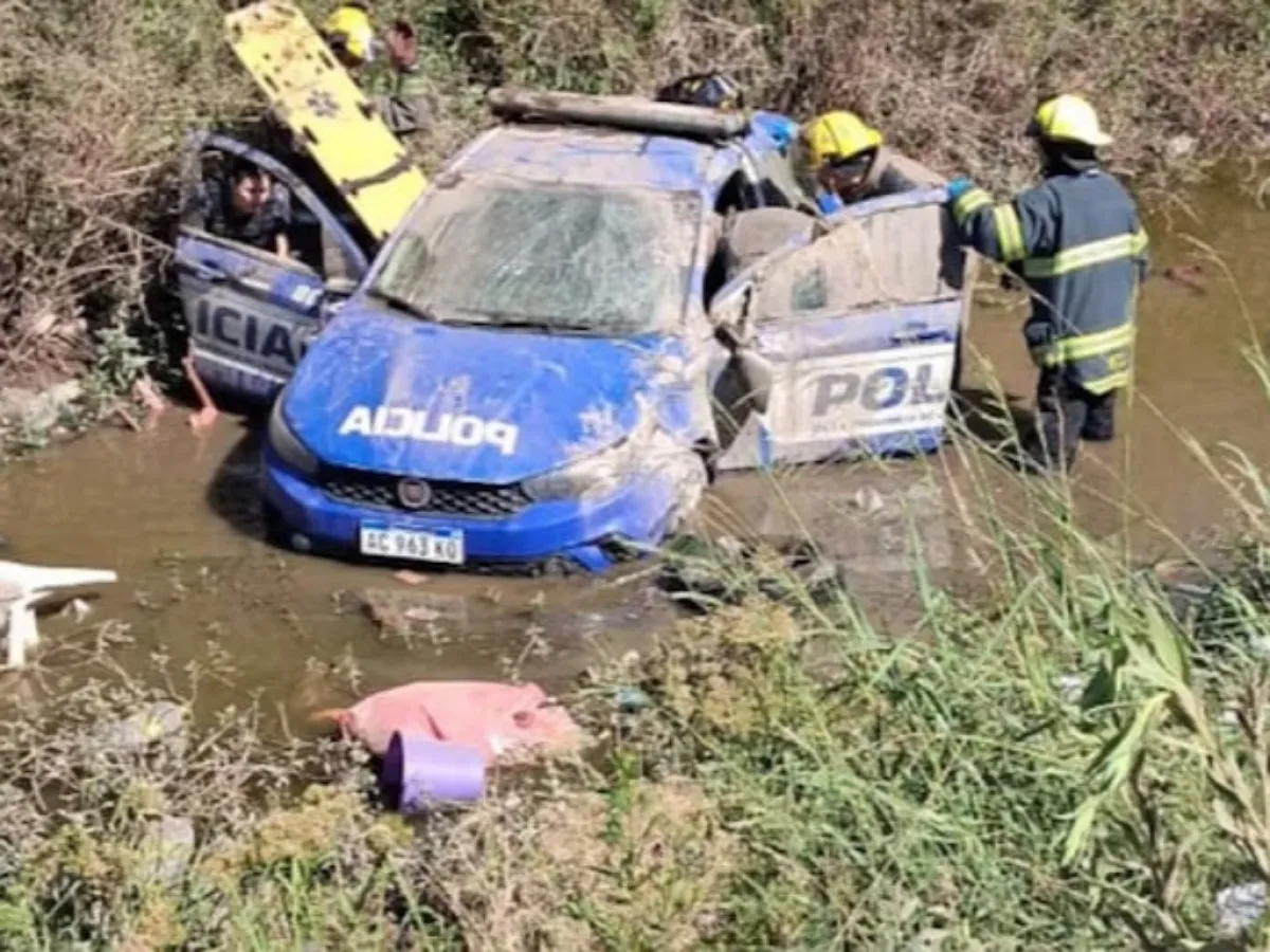 Este sábado, dos policías resultaron heridos durante una persecución luego de que el patrullero en el que viajaban cayera a un canal de desagüe. El accidente ocurrió en la ciudad de Bell Ville, en Córdoba.