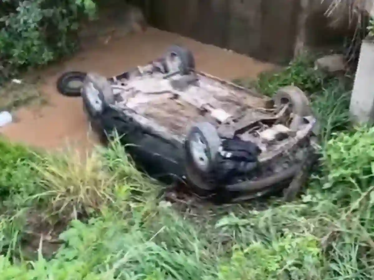 La escena se dio en las primeras horas de la mañana, con lluvia intensa que complicaba la visibilidad en las calles de Salta. Alrededor de las 5:30, el auto perdió el control en el acceso pavimentado al barrio, tomó mal la curva y voló directamente al canal desde una altura de unos diez metros. El rodado quedó patas para arriba, totalmente chocado, en el fondo de la zanja.
