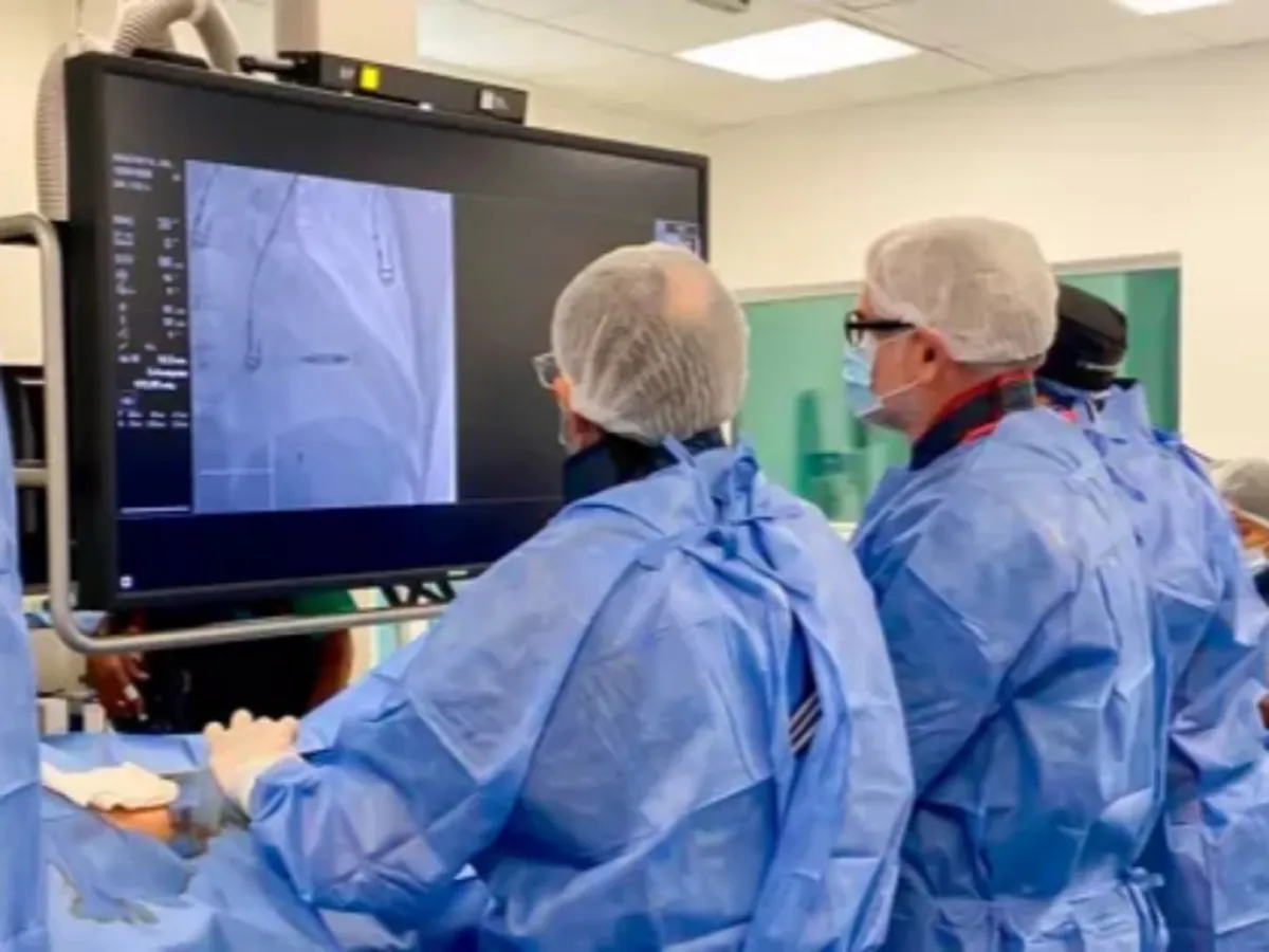 La práctica fue posible gracias a la infraestructura del hospital, que dispone de un angiógrafo de última generación. Este equipamiento permite obtener imágenes del sistema vascular en tiempo real, facilitando intervenciones de alta precisión en cuadros como obstrucciones arteriales, aneurismas y enfermedades valvulares. El procedimiento estuvo a cargo de un equipo de especialistas integrado por los doctores Sebastián Schanz, Federico Robles, Federico Sanmillán y Horacio Jauregui, expertos en cardiología, marcapasos y arritmias.