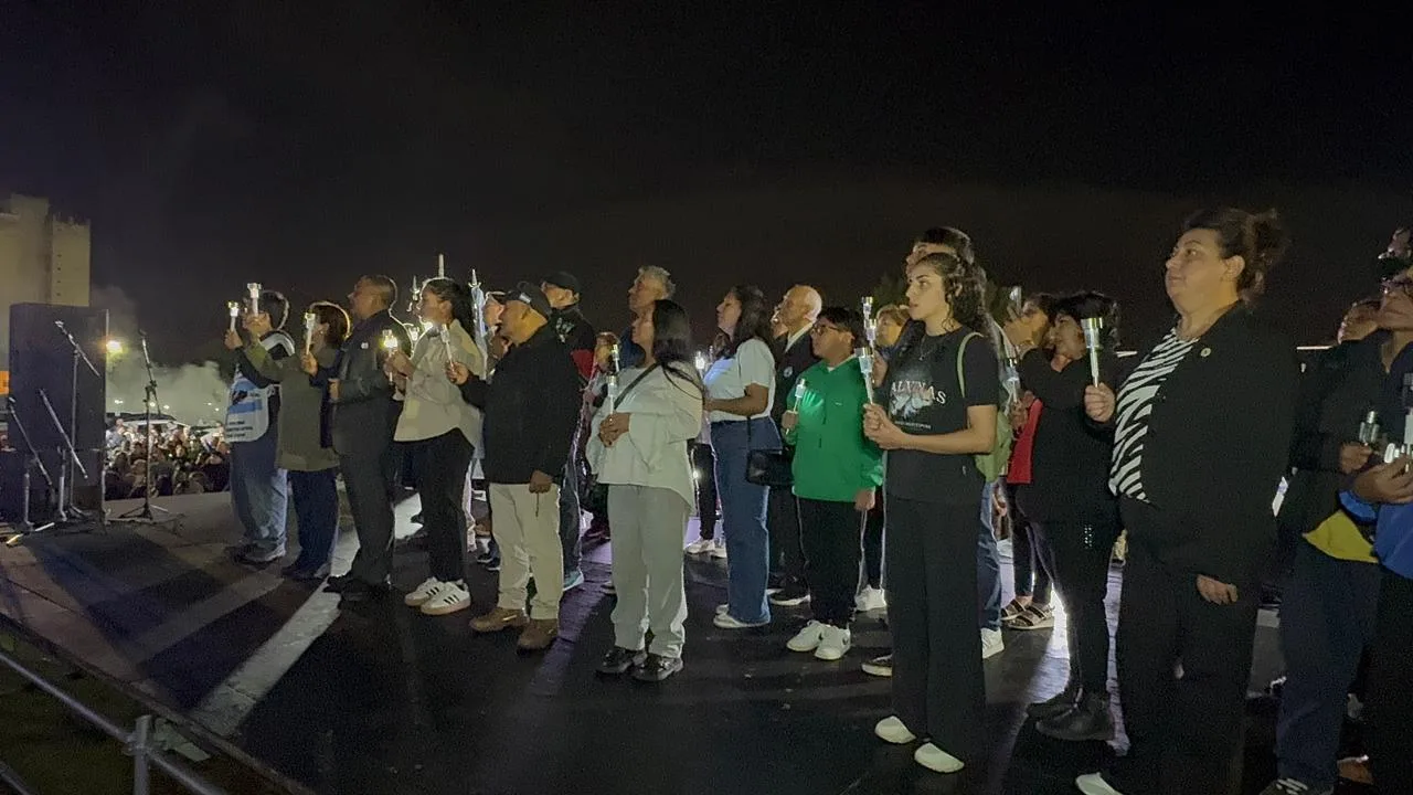 Los familiares de los Caídos encendieron las antorchas y, en representación de los 34 héroes, se nombró a cada uno, reafirmando que su presencia permanece viva hoy y siempre.