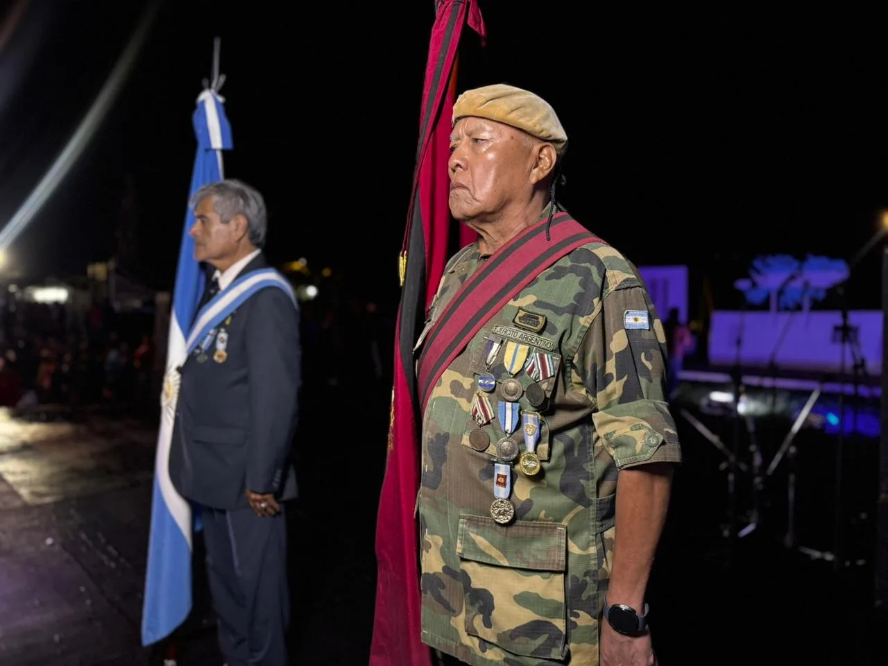 A las 23:30, la Banda del Ejército ofreció una retreta, seguida de un audiovisual homenaje realizado por el equipo de prensa de la Municipalidad. El cierre fue a viva voz con la entonación del Himno Nacional y de la Marcha de Malvinas, momentos que emocionaron a veteranos, familiares y vecinos reunidos.
