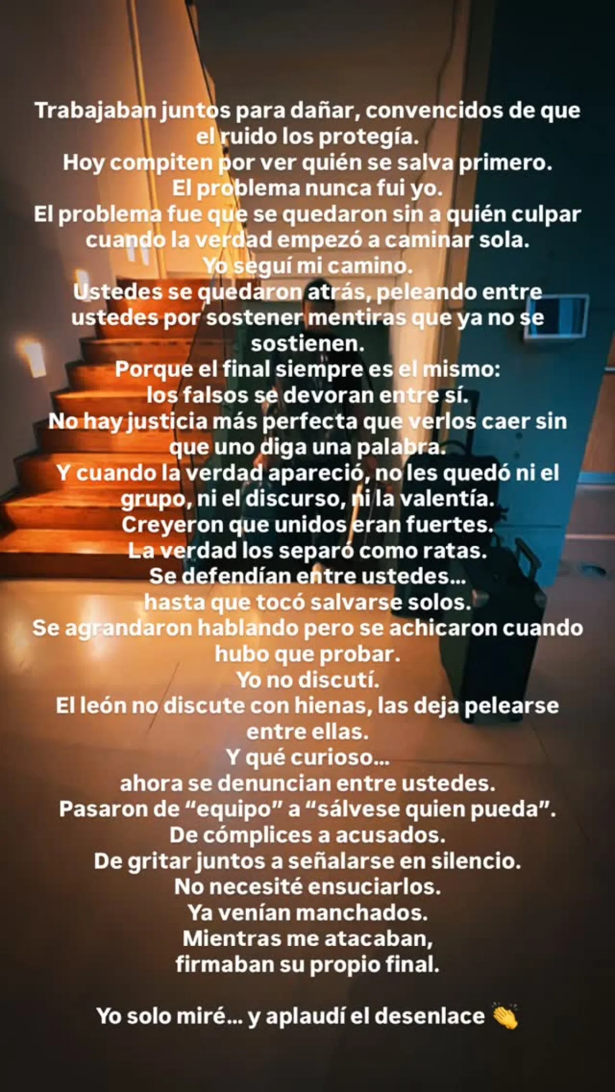 Fue en ese marco que Icardi decidió intervenir. En su publicación, además de la frase que se convirtió en titular, el futbolista agregó reflexiones sobre la caída de quienes, según él, intentaron dañarlo: “Trabajaban juntos para dañar, convencidos de que el ruido los protegía. Hoy compiten por ver quién se salva primero”, escribió en una de sus historias. Con estas palabras, dejó en claro que considera que los problemas de Wanda y sus abogados no lo involucran directamente, pero sí lo afectan de manera indirecta.